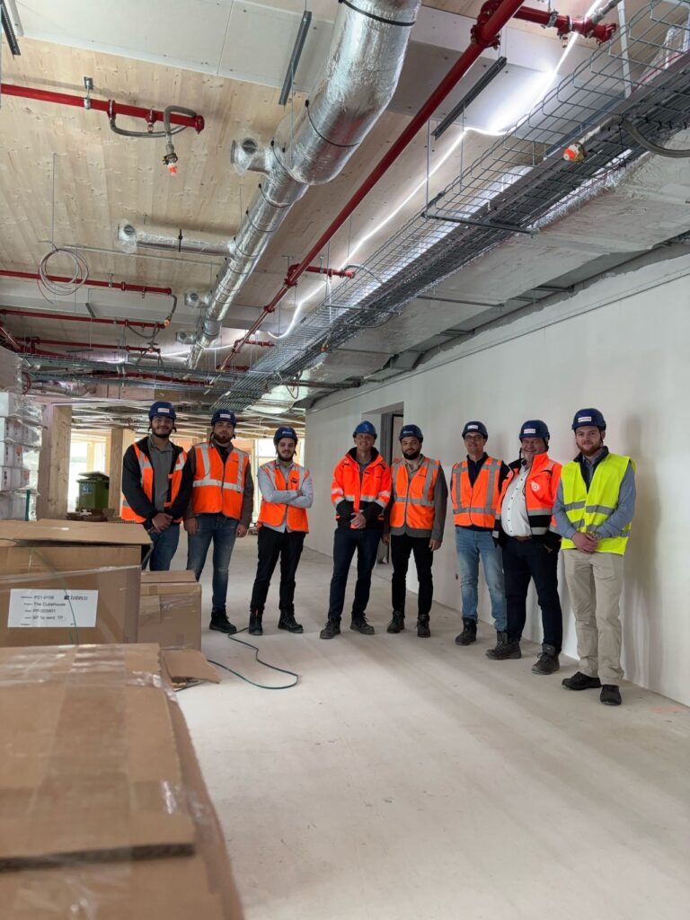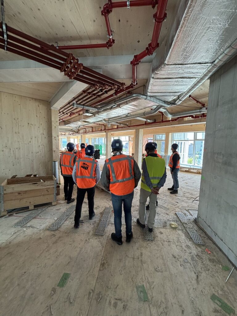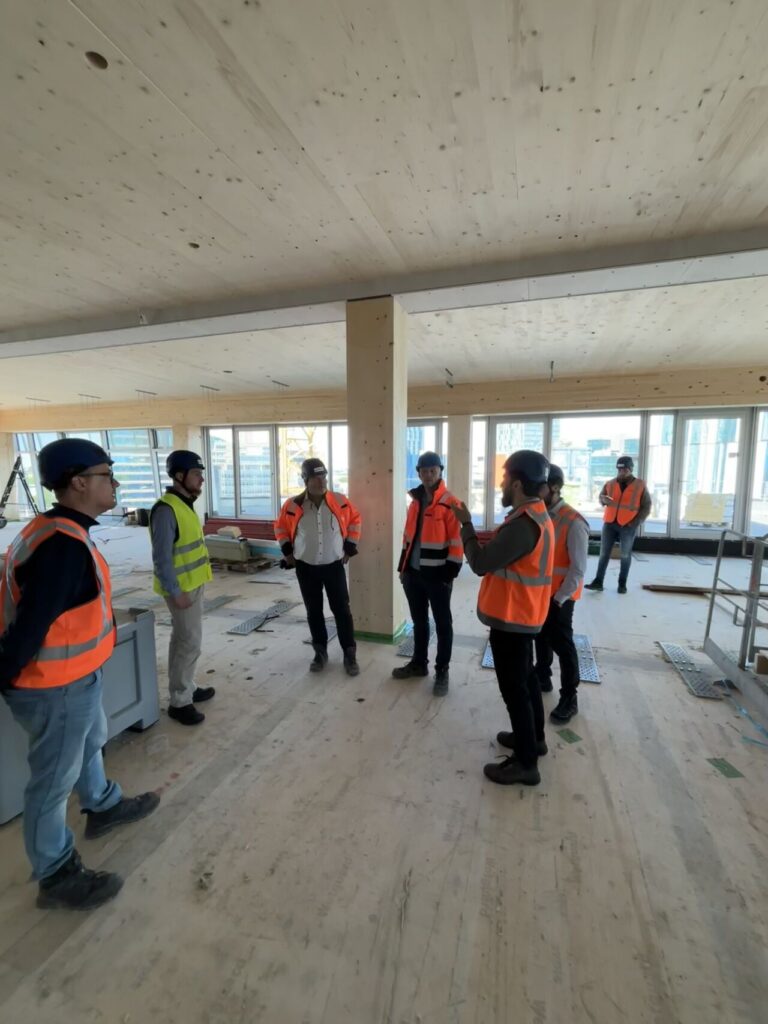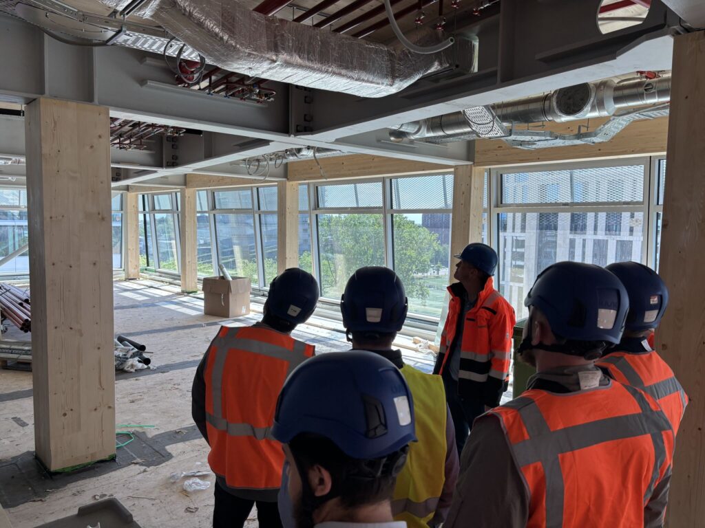 Vervolgens brachten we een bezoek aan het bijzondere project Cube House, een innovatieve bouwlocatie met een grotendeels houten constructie. Op de bouwplaats kregen we weer een uitgebreide toelichting van de betrokken medewerkers.
